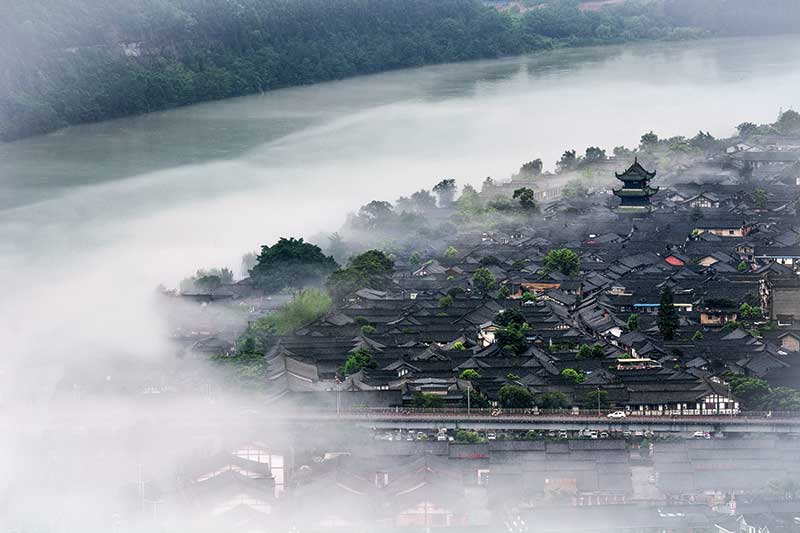 阆中古城保存完整的明清建筑,街道古香古色,可品尝张飞牛肉、保宁醋、蒸馍等美食,欣赏传统民俗表演。